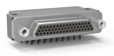 堅(jiān)固型Micro-D 連接器,微型,0.050“/1.27mm 間距,金屬主體, 電路板安裝, 電鍍通孔 (PTH), 直角插頭, 窄尺寸和盲間隙切割, 帶安裝耳。2、3、4 排,尺寸:9-100