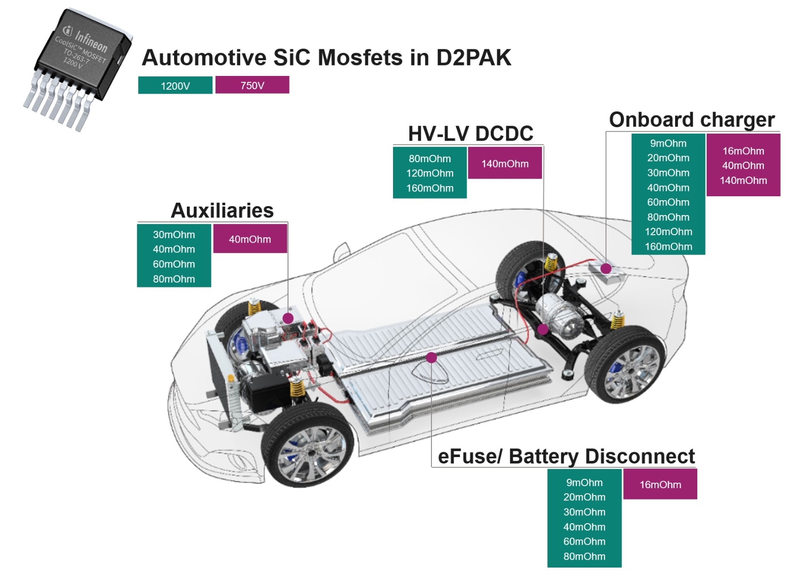 SiC MOSFET采用英飛凌性能優化芯片技術(Gen1p),具有一流的開關性能、抗寄生導通的魯棒性以及改進的RDSon和Rth(j-c)。高功率密度、卓越的效率、雙向充電能力和顯著降低的系統成本使其成為車載充電器和DCDC應用的理想選擇。